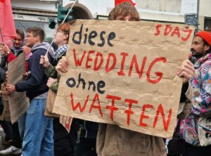 „Es gab Zeiten, da wurde man wenigstens noch gefragt, ob man den totalen Krieg überhaupt möchte.“ Diese sarkastische Botschaft trug ein Teilnehmer der Friedensdemonstration am 3. Oktober in Berlin auf einem Schild, nebst einem Foto von Göbbels im Berliner Sportpalast. Kriegsvorbereitungen laufen in ganz Deutschland, in allen Branchen, auf allen Feldern. Eine antimilitaristische Initiative hat jetzt eine digitale Karte eingerichtet, auf der „48 Orte der Aufrüstung“, also Produktionsstätten der Rüstungsindustrie, aber auch Bundeswehr-Einrichtungen, eingezeichnet sind. Sie dient als Werkzeug für antimilitaristischen Widerstand.